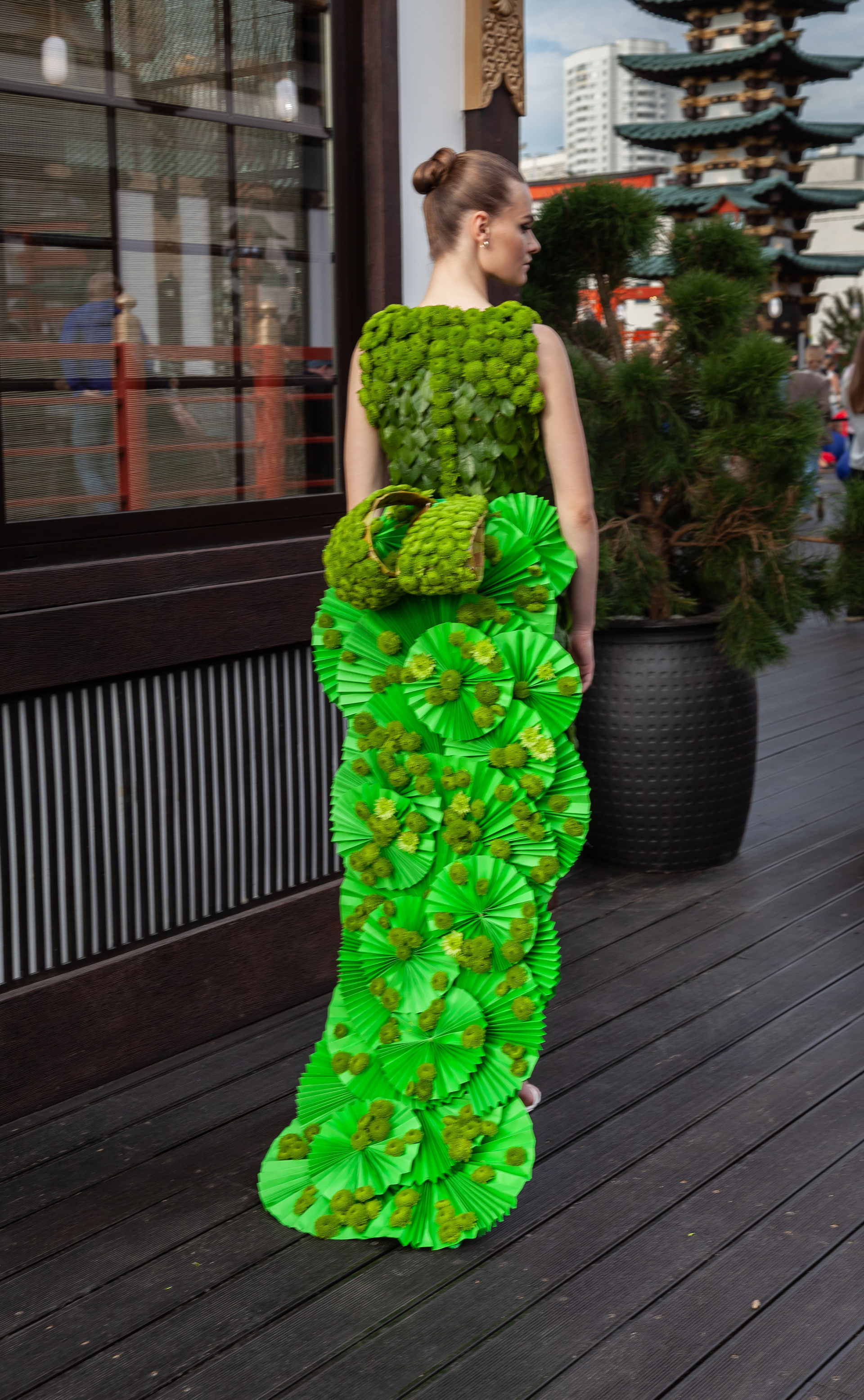 Unlike artificial or preserved materials, these compositions carried an inherent fragility. Their beauty was immediate, but fleeting — changing over time, reacting to light, movement, and air. This ephemerality added a temporal dimension to the show, where each moment became unrepeatable.